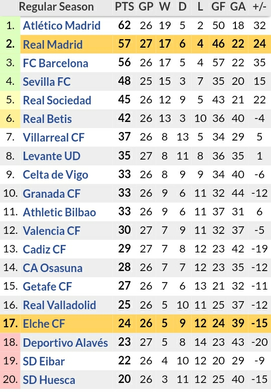 Find out the ranking of your favorite team this season laliga today. La liga league table, results, statistics, current form and standings.