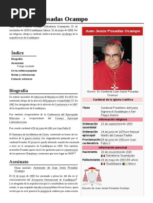 Juan Jesus Posada Ocampo / Claves Del Asesinato Del Cardenal Juan Jesus Posadas Ocampo / 24 de mayo de 1993) fue un religioso, obispo y cardenal católico mexicano, arzobispo de la arquidiócesis de guadalajara.